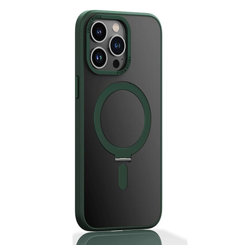 Θήκη κινητού τηλεφώνου με αίσθηση δέρματος για iPhone 14 Pro, με MagSafe, αντικραδασμική προστασία και βάση στήριξης (Μωβ)