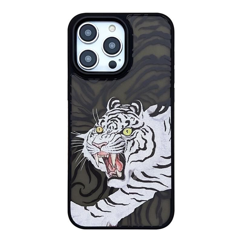 Θήκη για iPhone 14 Pro με αίσθηση δέρματος, ματ, από TPU+PC ανθεκτική στις κρούσεις (Tiger)