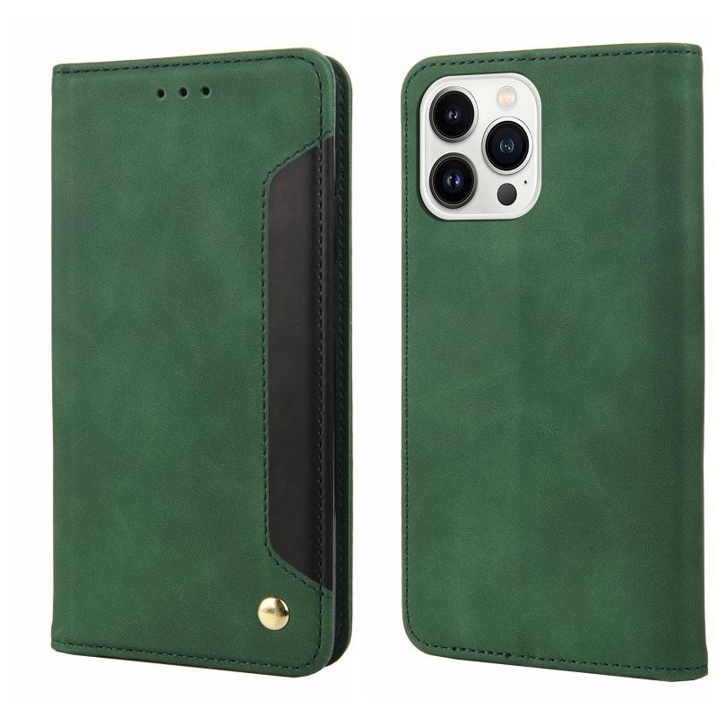 Θήκη Δερμάτινη για iPhone 14 Pro - Αίσθηση Δέρματος & Συνδυασμός Χρωμάτων (Πράσινο)