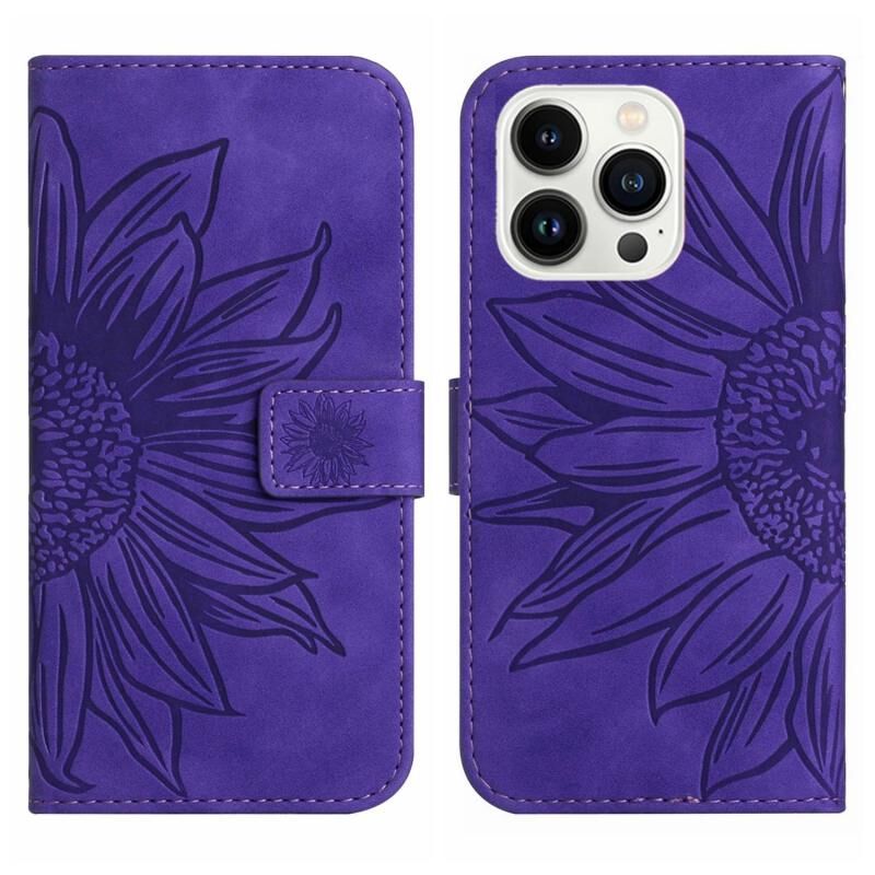 Θήκη τηλεφώνου από δέρμα με σχέδιο ηλιοτρόπιου και αίσθηση δέρματος για iPhone 14 Pro, με λουρί (Κόκκινο)