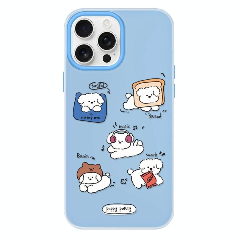 Θήκη τηλεφώνου για iPhone 14 Pro, υβριδική από TPU και PC, με αίσθηση δέρματος (Puppy Party)