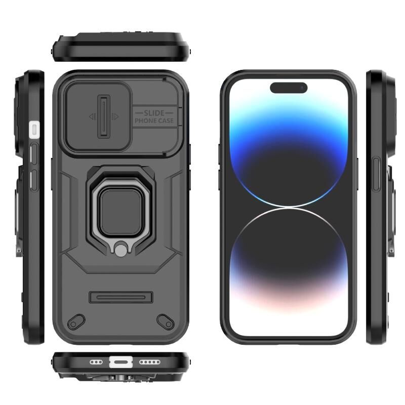 Θήκη κινητού τηλεφώνου για iPhone 14 Pro με συρόμενο προστατευτικό κάμερας Camshield, κατασκευασμένη από TPU + PC, ανθεκτική σε κρούσεις, με βάση στήριξης (Μπλε)
