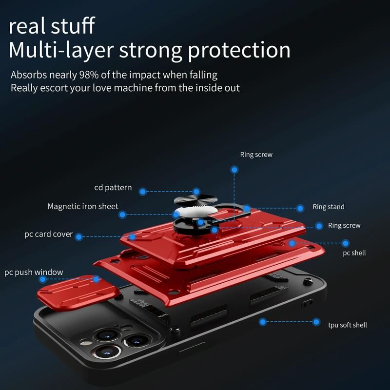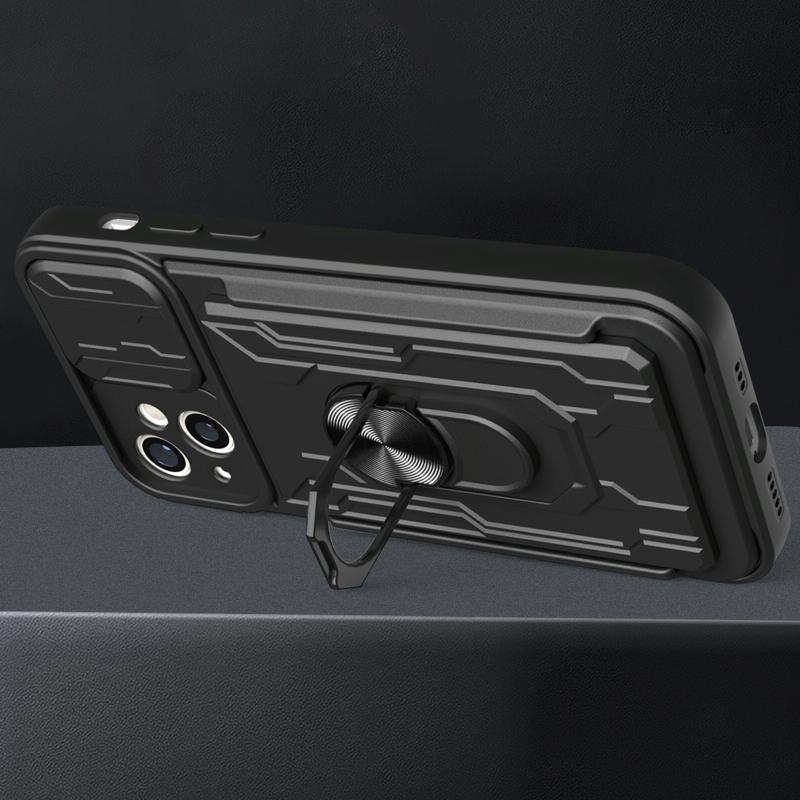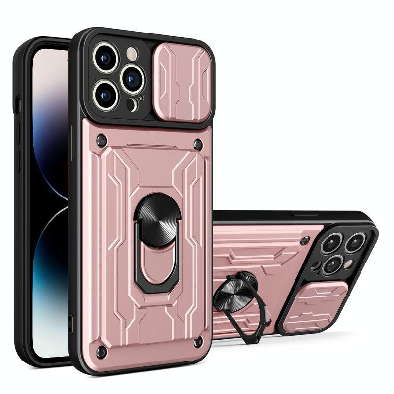Θήκη κινητού τηλεφώνου για iPhone 14 Pro με συρόμενο προστατευτικό κάμερας Camshield, κατασκευασμένη από TPU+PC με υποδοχή κάρτας (Περλέ Λευκό).