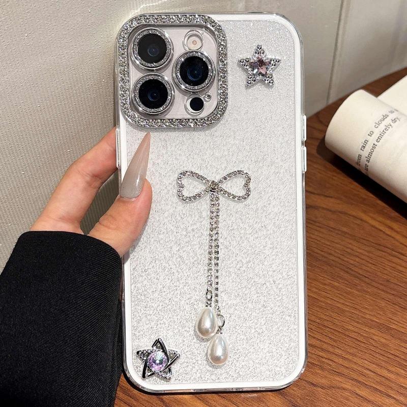Θήκη iPhone 14 Pro με Γκλίτερ, Ρητίνες & Κρόσσια - Μονόχρωμη (Λευκό)