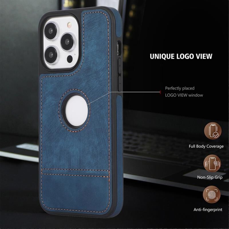 Θήκη τηλεφώνου για iPhone 14 Pro, ραφτή με κοψίματα και κενά, από PU δέρμα (Μπλε)