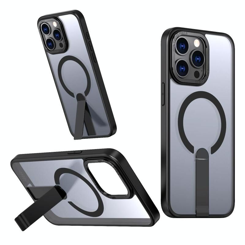 For iPhone 14 Pro Star Shine Series TPU + PC MagSafe Phone Case with Fold Holder(Black)
