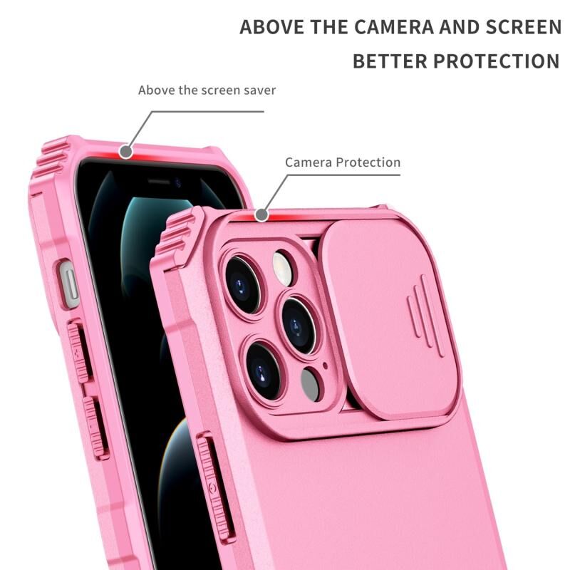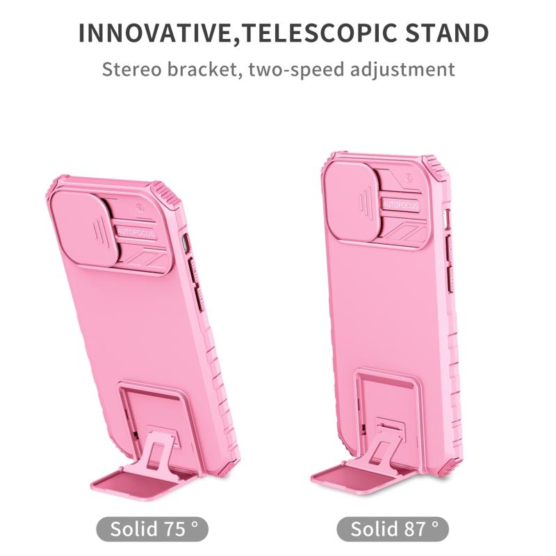 Θήκη τηλεφώνου για iPhone 14 Pro με στερεοσκοπική βάση και συρόμενο προστατευτικό κάμερας (ρόζ)