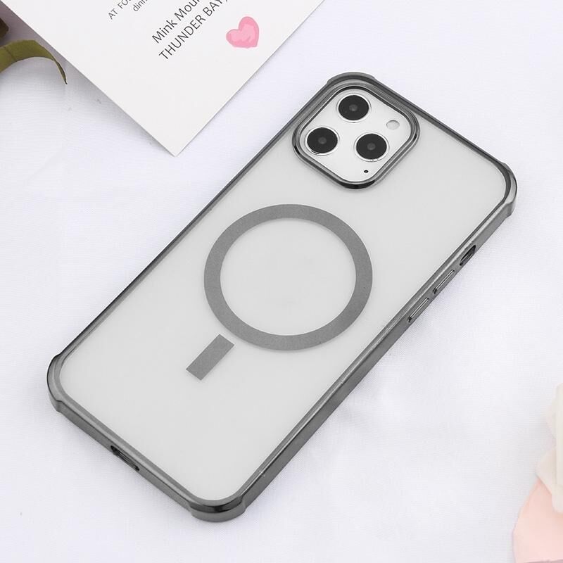 Θήκη τηλεφώνου για iPhone 14 Pro με ευθείες πλευρές, επίστρωση λέιζερ, MagSafe, διαφανές TPU (Γραφίτης Μαύρο)