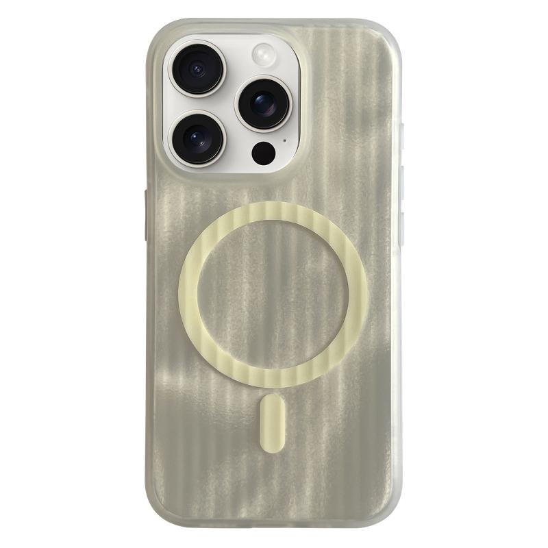 For iPhone 14 Pro Striped Skin Feel Magnetic Magsafe Phone Case(Yellow)