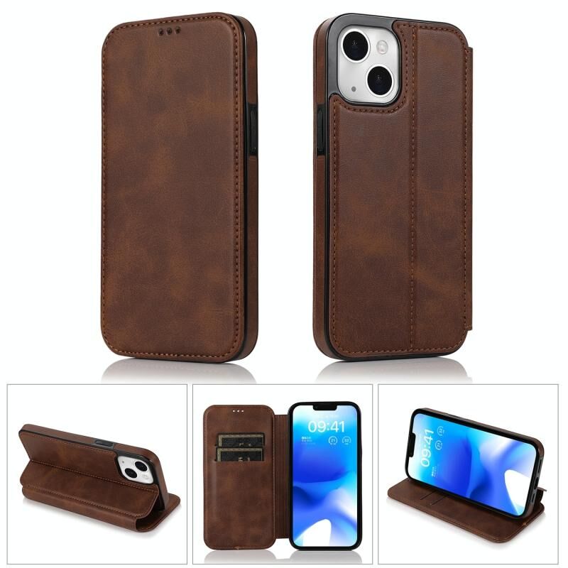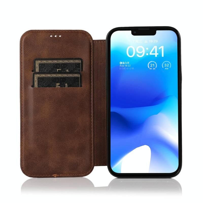 For iPhone 14 Pro Strong Magnetic Closure PU + TPU Leather Phone Case(Brown)