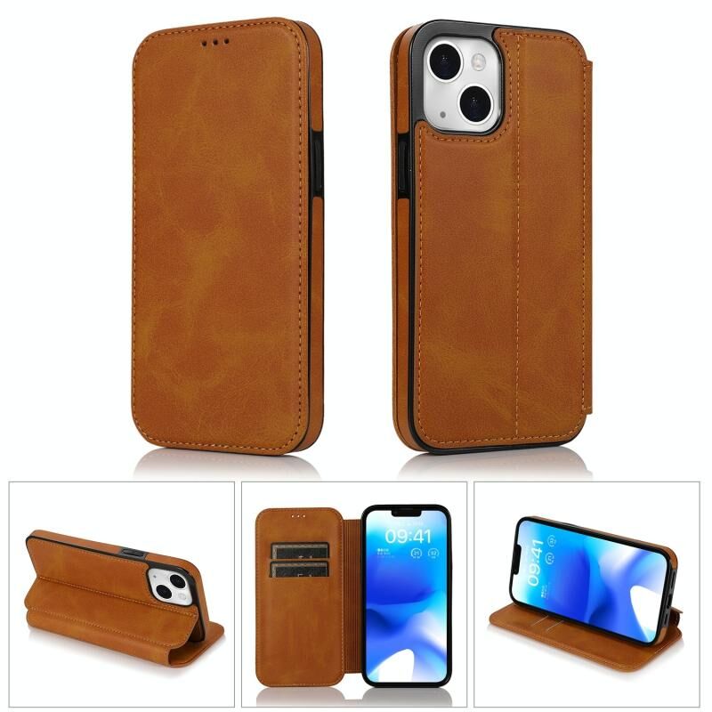 For iPhone 14 Pro Strong Magnetic Closure PU + TPU Leather Phone Case(Khaki)