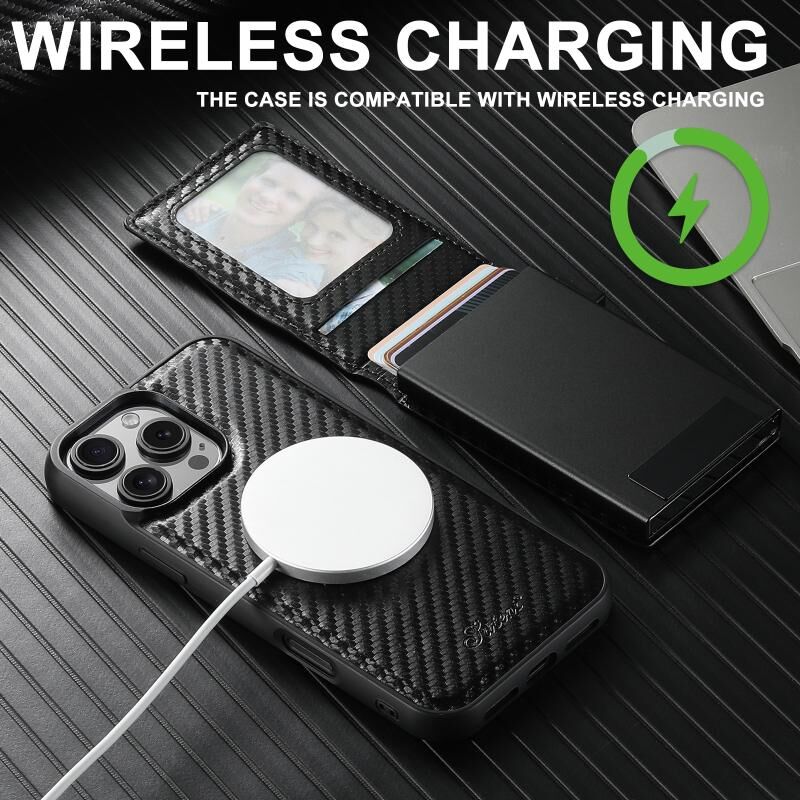 Θήκη κινητού τηλεφώνου Suteni H19 από ανθρακονήματα 2 σε 1 με αποσπώμενο κουτί καρτών MagSafe για iPhone 14 Pro (Μαύρο) (Suteni)