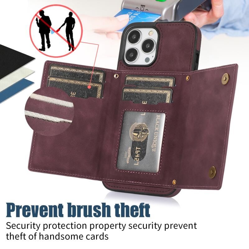 Θήκη τηλεφώνου από δέρμα με προστασία RFID για iPhone 14 Pro, τριπλή, με κορδόνι (Μαύρο)