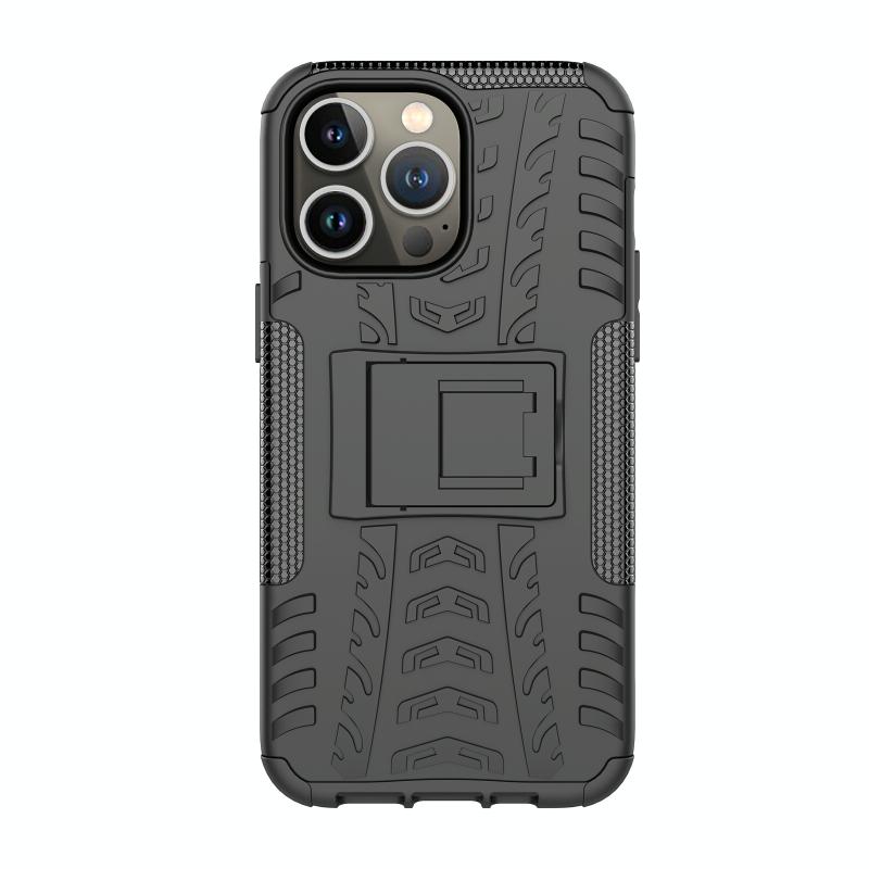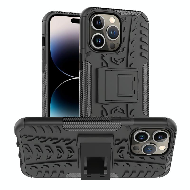 Θήκη κινητού για iPhone 14 Pro με υφή ελαστικού αυτοκινήτου, κατασκευασμένη από TPU + PC με βάση στήριξης (Πορτοκαλί)
