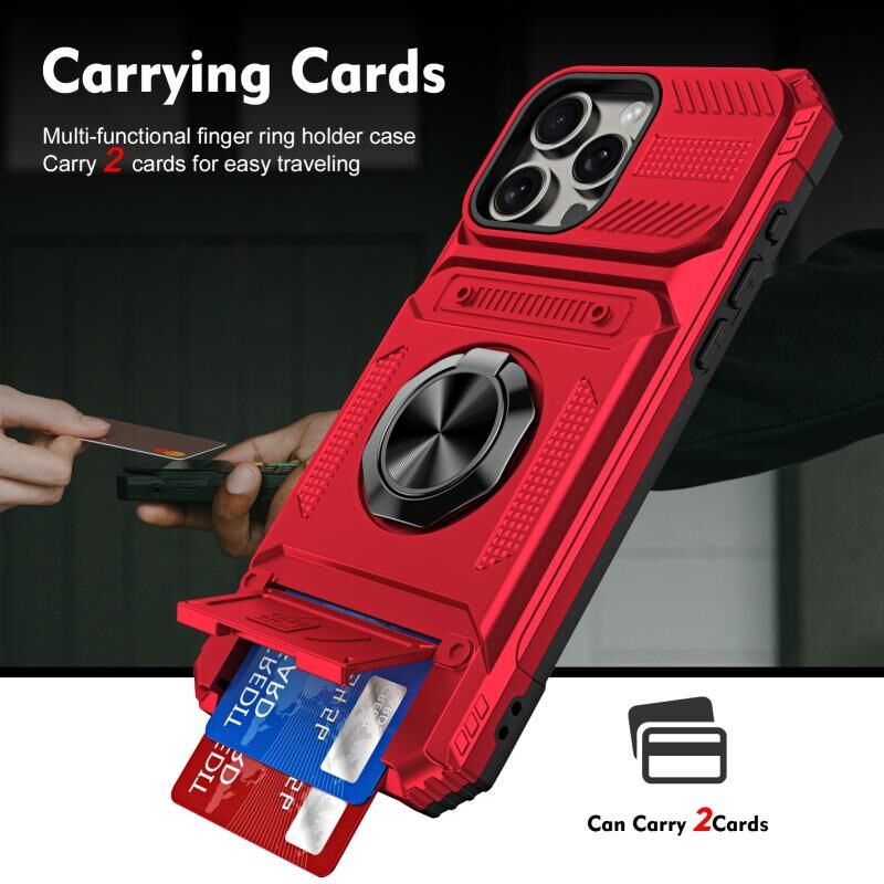Θήκη τηλεφώνου για iPhone 14 Pro από TPU+PC με αντοχή σε κρούσεις και μεταλλική βάση στήριξης (Κόκκινη)