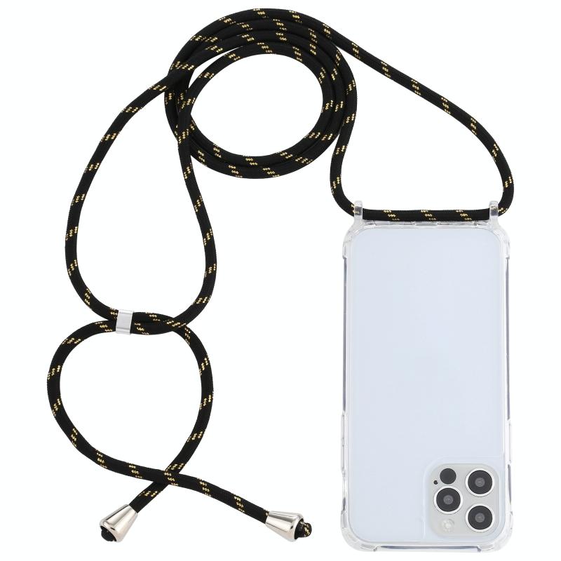 Θήκη προστασίας κινητού τηλεφώνου για iPhone 14 Pro, διαφανές ακρυλικό, αντικραδασμική με αερόσακο και κορδόνι (Κίτρινο Ουράνιο Τόξο)
