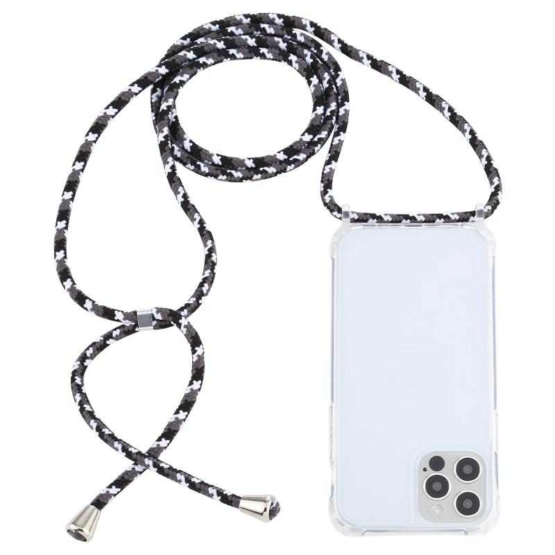 Θήκη προστασίας κινητού τηλεφώνου για iPhone 14 Pro, διαφανές ακρυλικό, αντικραδασμική με αερόσακο και κορδόνι (Κίτρινο Ουράνιο Τόξο)