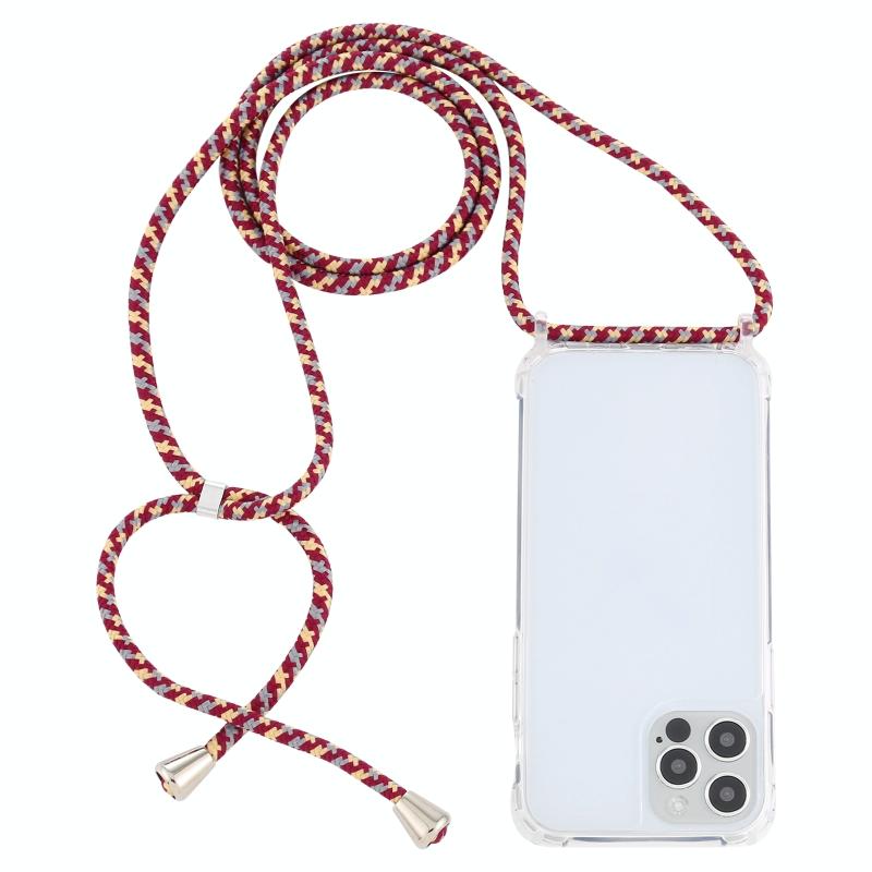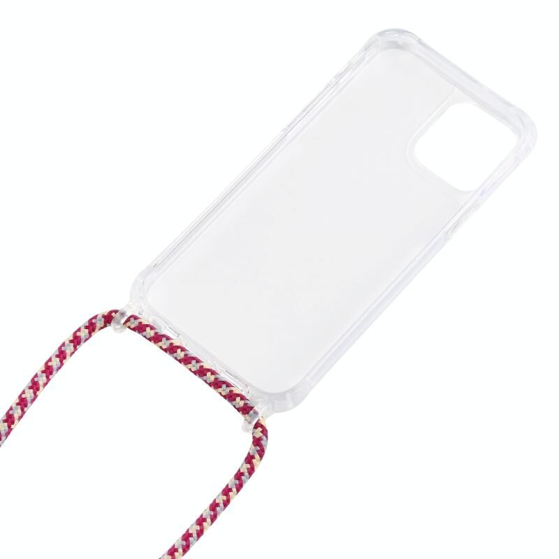 Θήκη προστασίας κινητού τηλεφώνου για iPhone 14 Pro, διαφανές ακρυλικό, αντικραδασμική με αερόσακο και κορδόνι (Κίτρινο Ουράνιο Τόξο)