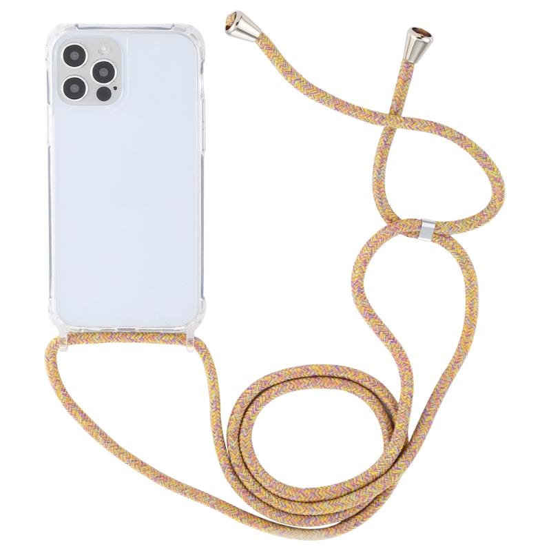 Θήκη προστασίας κινητού τηλεφώνου για iPhone 14 Pro, διαφανές ακρυλικό, αντικραδασμική με αερόσακο και κορδόνι (Κίτρινο Ουράνιο Τόξο)