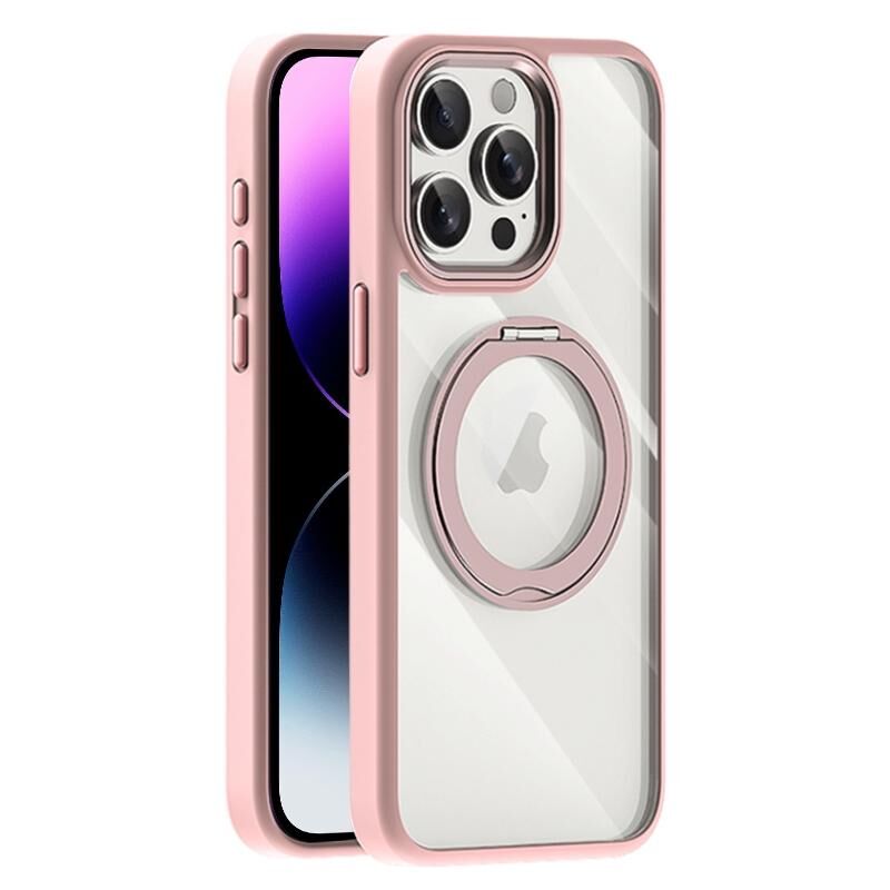 For iPhone 14 Pro Transparent MagSafe Magnetic Holder Phone Case(Pink)