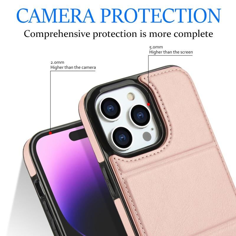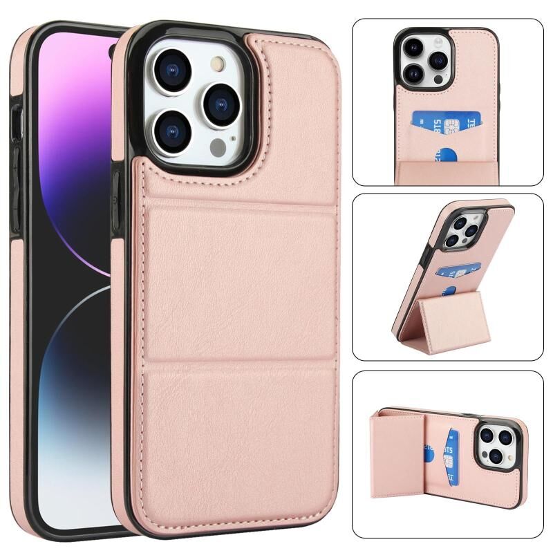 For iPhone 14 Pro Tri-fold Holder Leather Phone Case with Card Slot(Rose Gold)