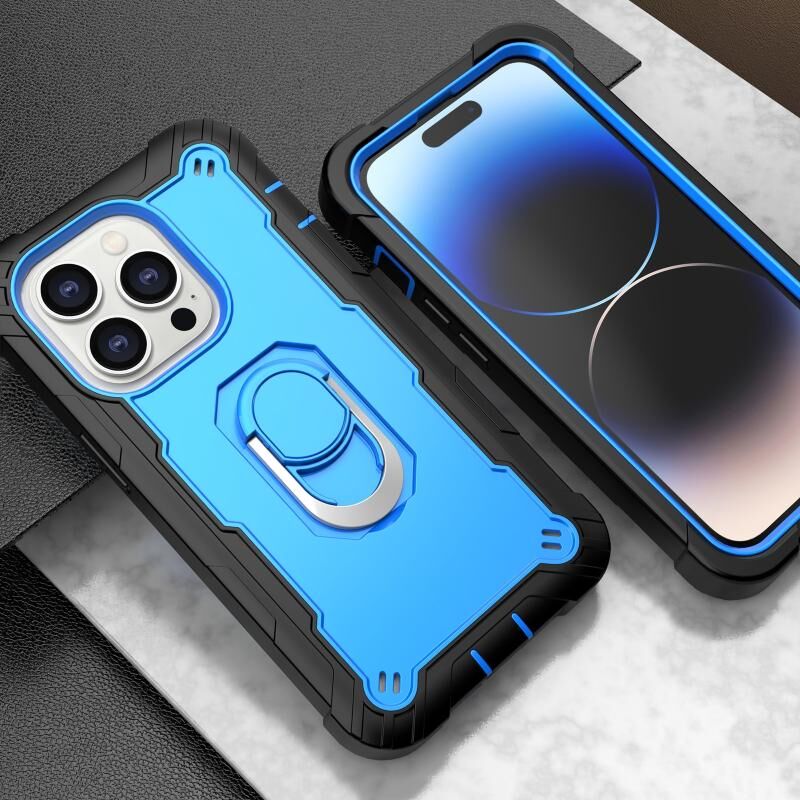 For iPhone 14 Pro Two-color Ring Holder Phone Case(Black + Blue)