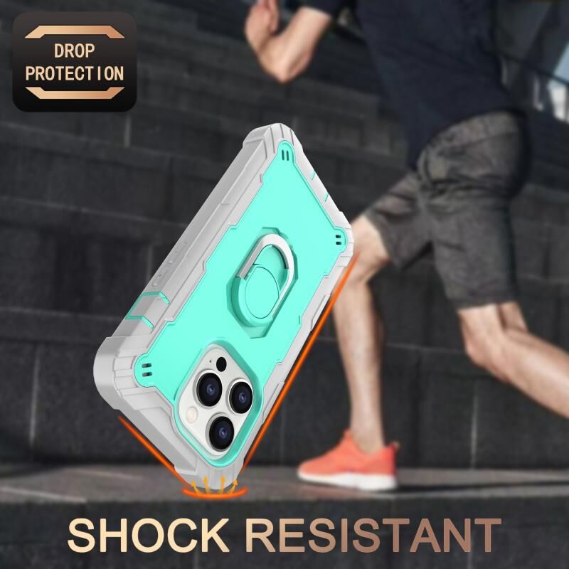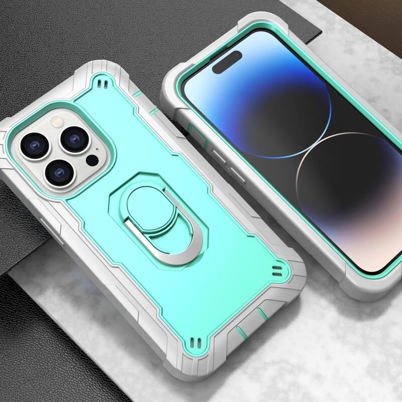 Θήκη τηλεφώνου για iPhone 14 Pro με Διπλού Χρώματος Δακτύλιο Στήριξης (Μέντα Πράσινο + Μπλε)