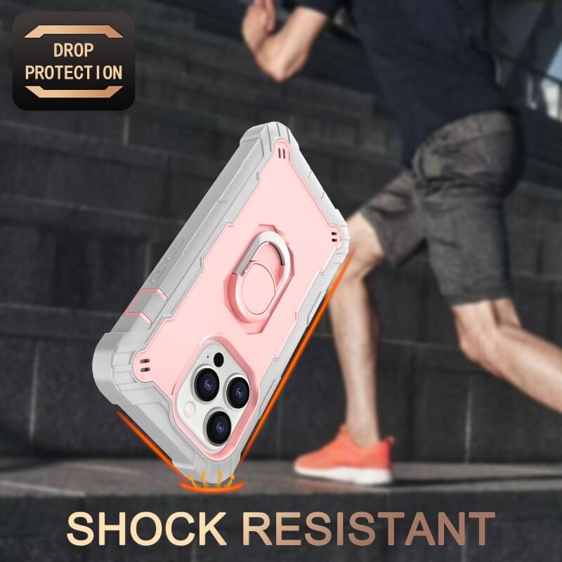 Θήκη τηλεφώνου για iPhone 14 Pro με Διπλού Χρώματος Δακτύλιο Στήριξης (Μέντα Πράσινο + Μπλε)