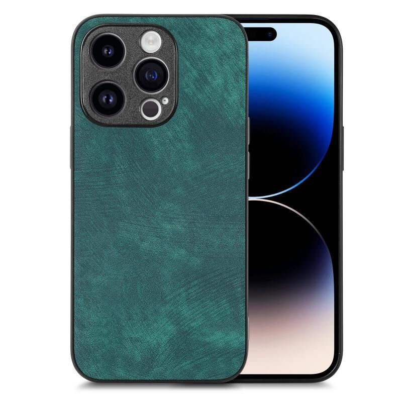 For iPhone 14 Pro Vintage Leather PC Back Cover Phone Case(Green)