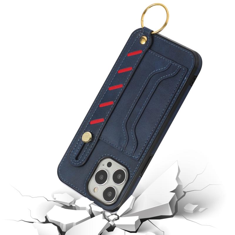 For iPhone 14 Pro Wristband Wallet Leather Phone Case(Blue)