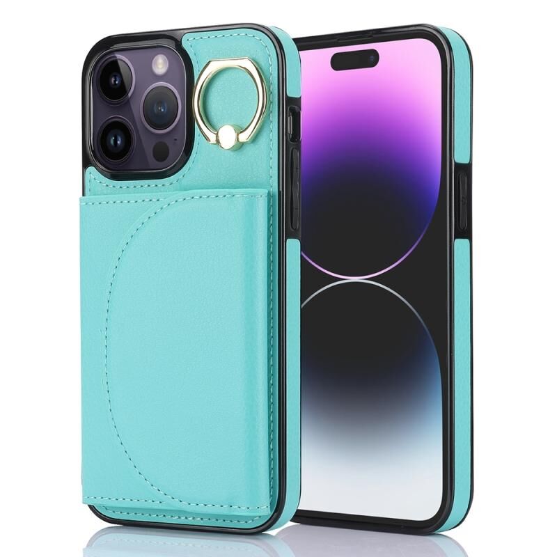 For iPhone 14 Pro YM007 Ring Holder Card Bag Skin Feel Phone Case(Green)