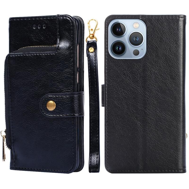 Θήκη τηλεφώνου από δέρμα με φερμουάρ για iPhone 14 Pro (Μαύρο)