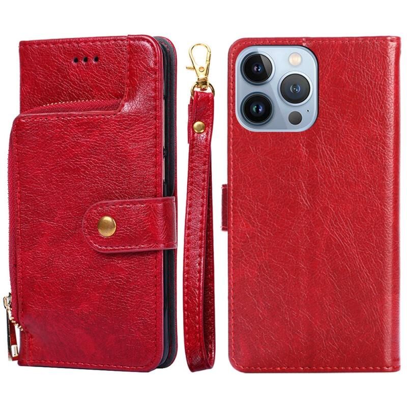 Θήκη τηλεφώνου από δέρμα με φερμουάρ για iPhone 14 Pro (Χρυσαφί Ρόδινο)