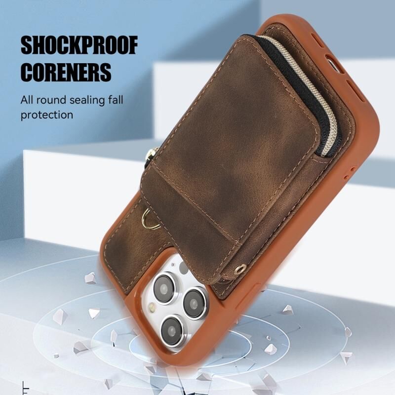 For iPhone 14 Pro Zipper Card Bag Back Cover Phone Case(Brown)
