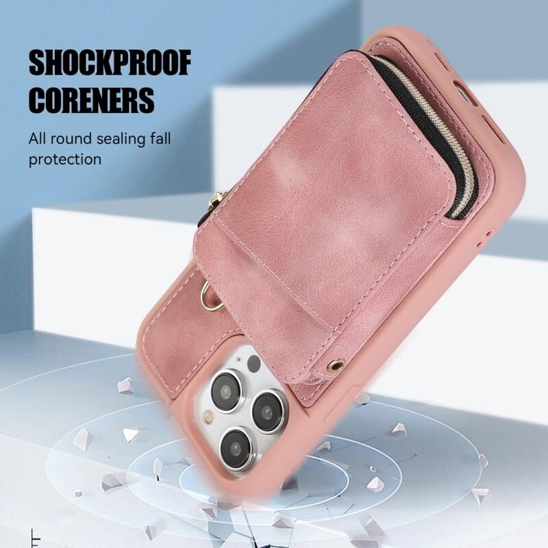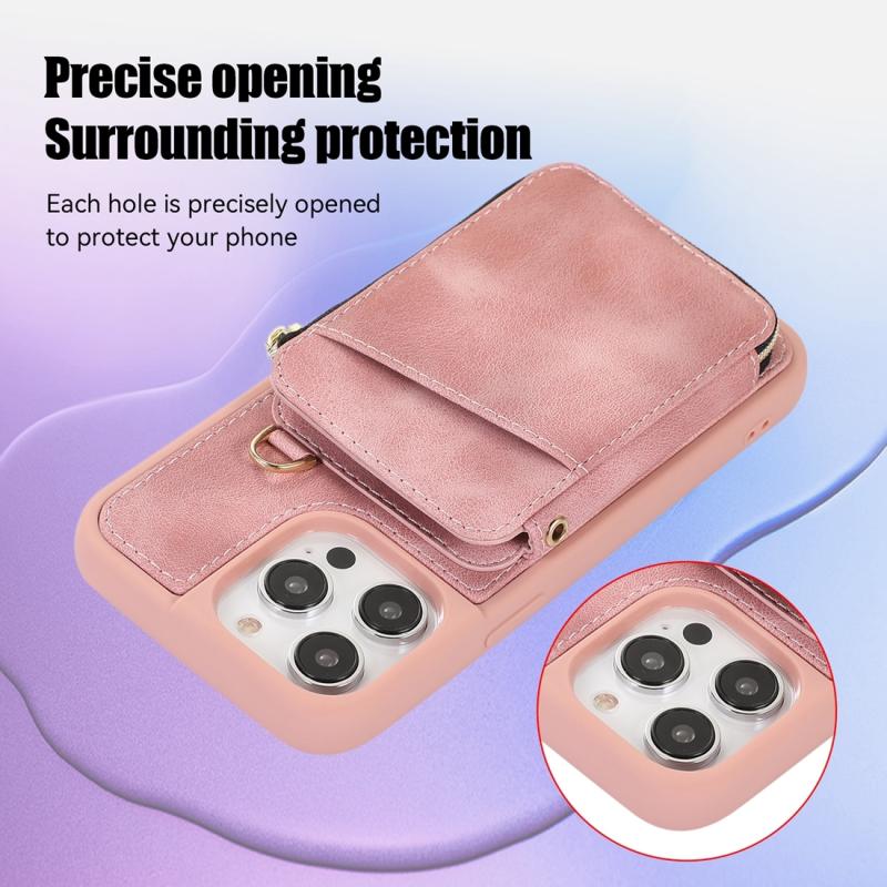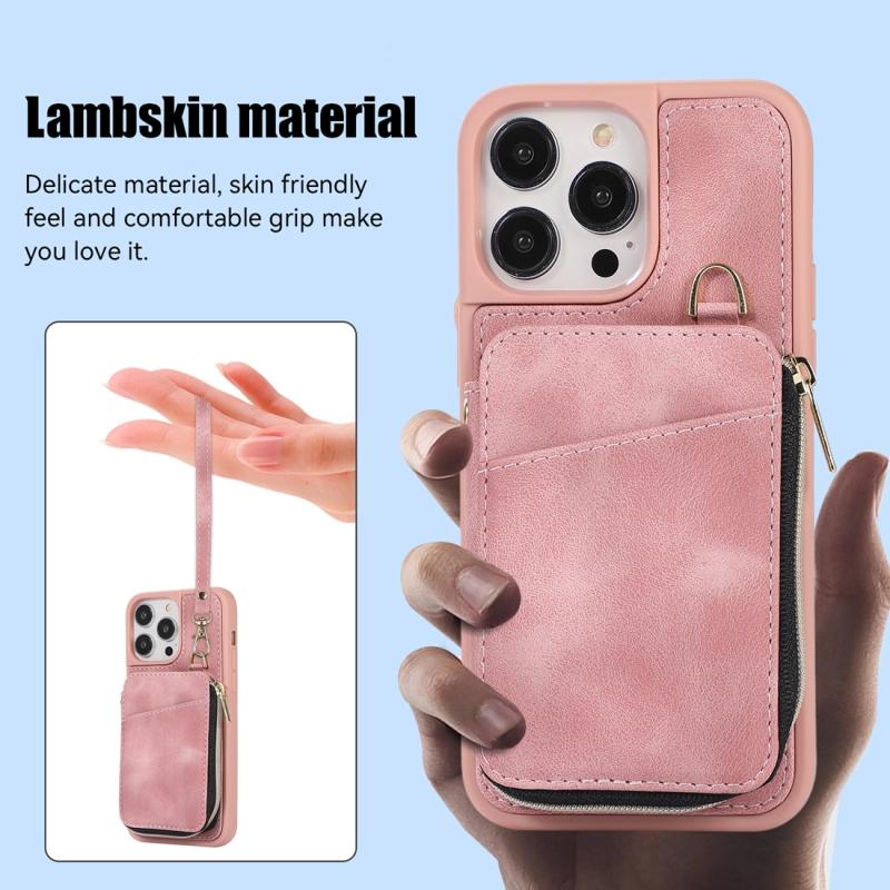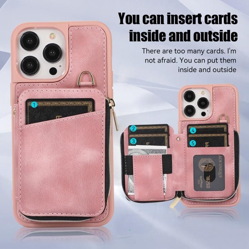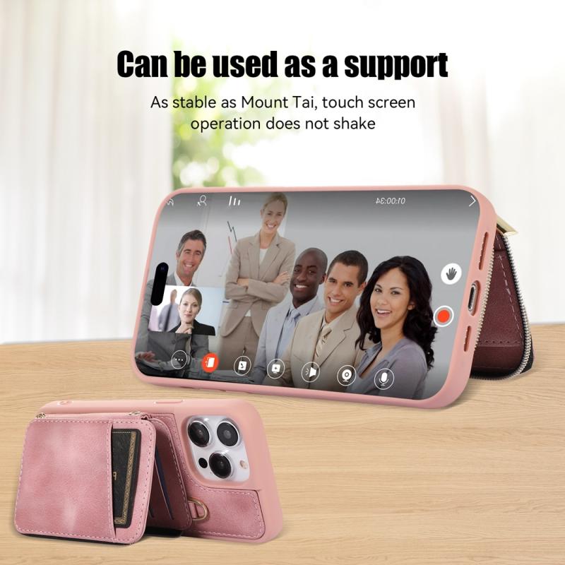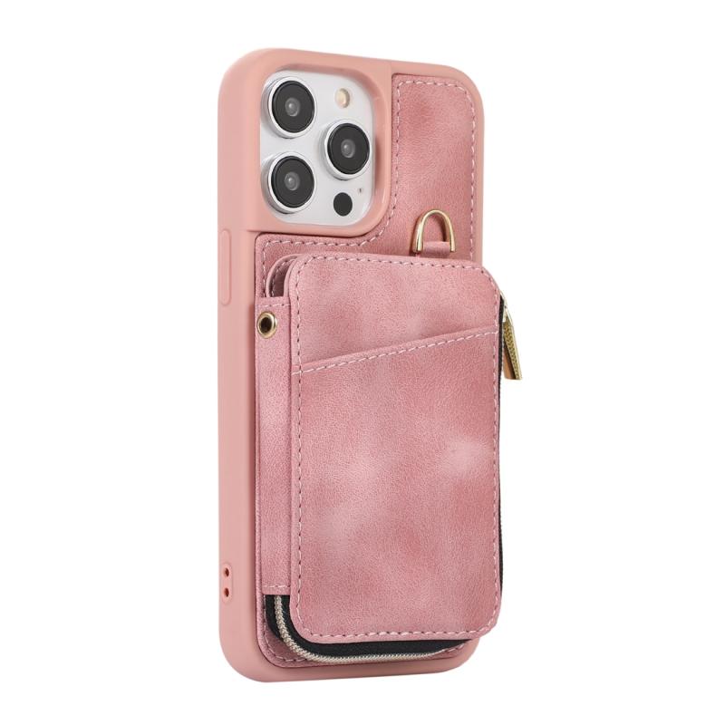 For iPhone 14 Pro Zipper Card Bag Back Cover Phone Case(Pink)
