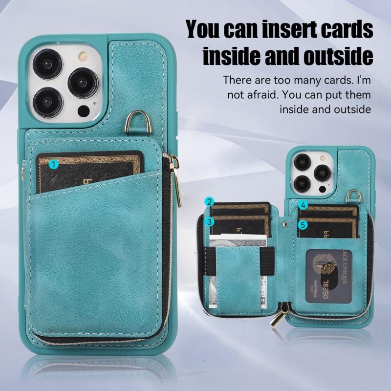 For iPhone 14 Pro Zipper Card Bag Back Cover Phone Case(Turquoise)