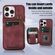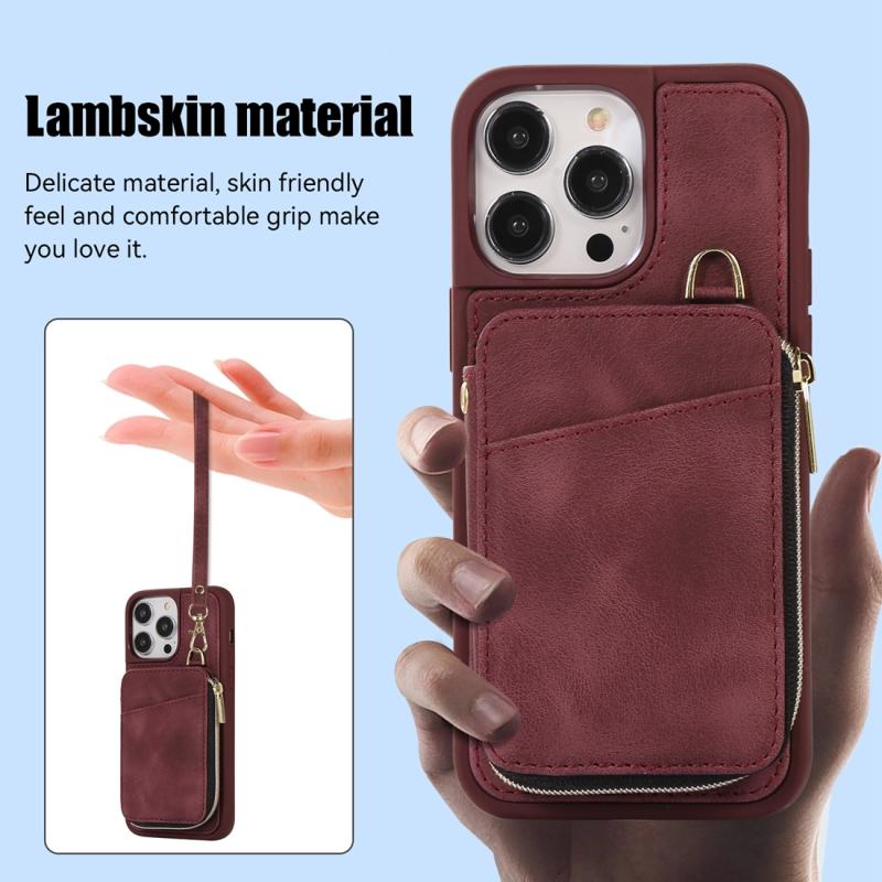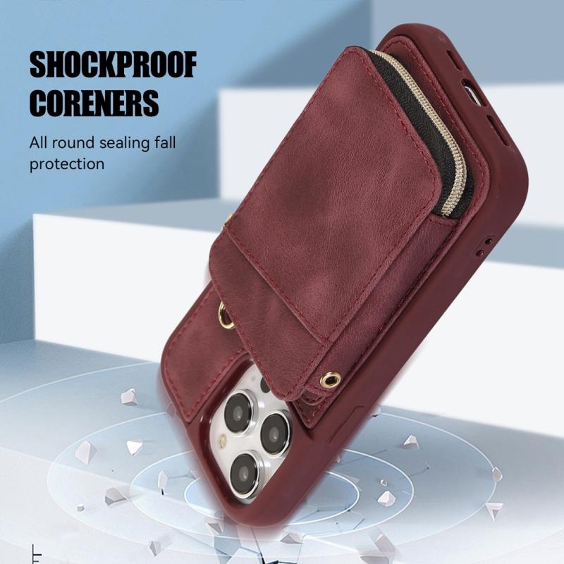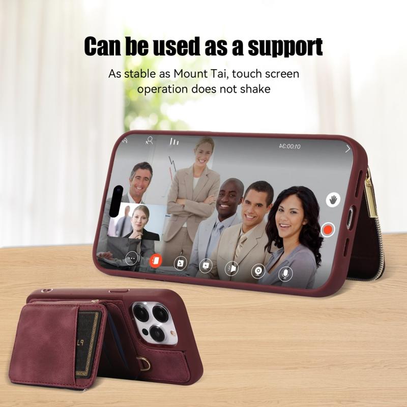 For iPhone 14 Pro Zipper Card Bag Back Cover Phone Case(Wine Red)
