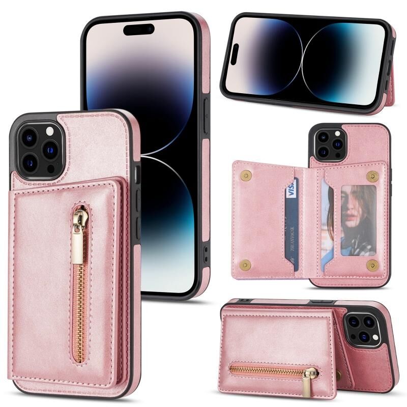 Θήκη κινητού τηλεφώνου με φερμουάρ και θήκη καρτών για iPhone 14 Pro (Μαύρο)