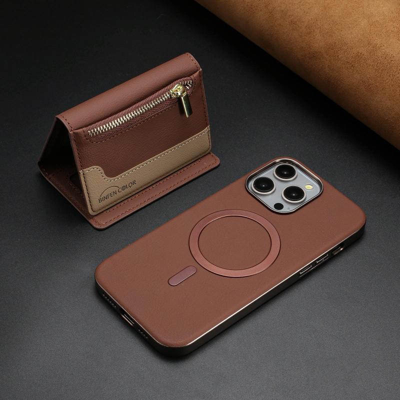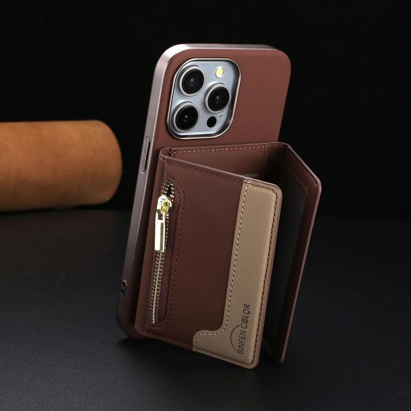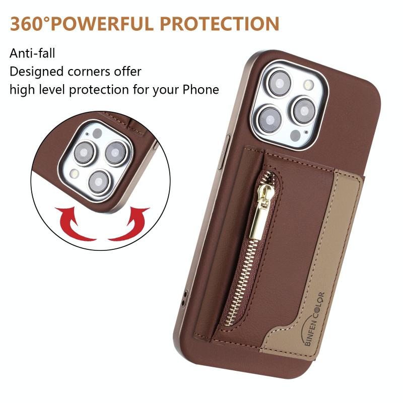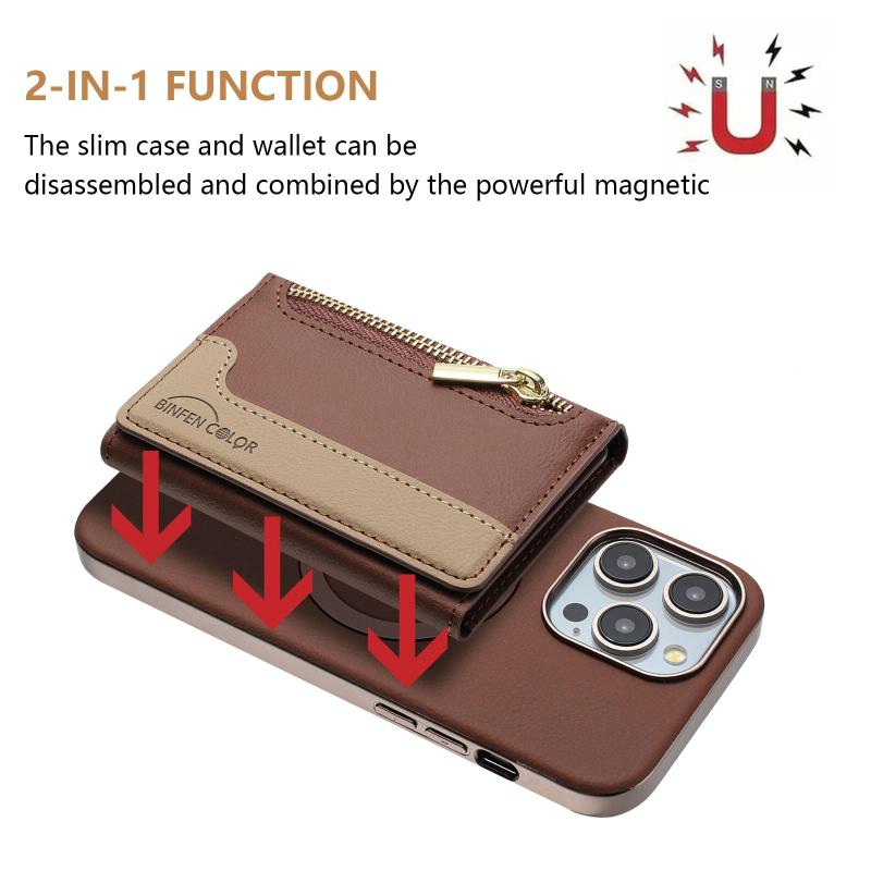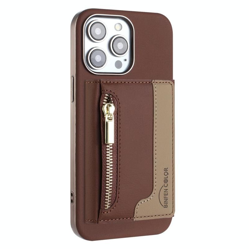 For iPhone 14 Pro Zipper Horizontal Magnetic Card Bag RFID MagSafe Phone Case(Brown)