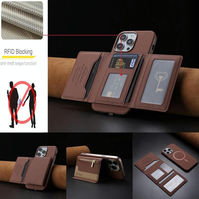2. Magnetic Tri-Fold Wallet Design: Features a horizontal fold with a strong magnetic closure for easy access and secure storage.