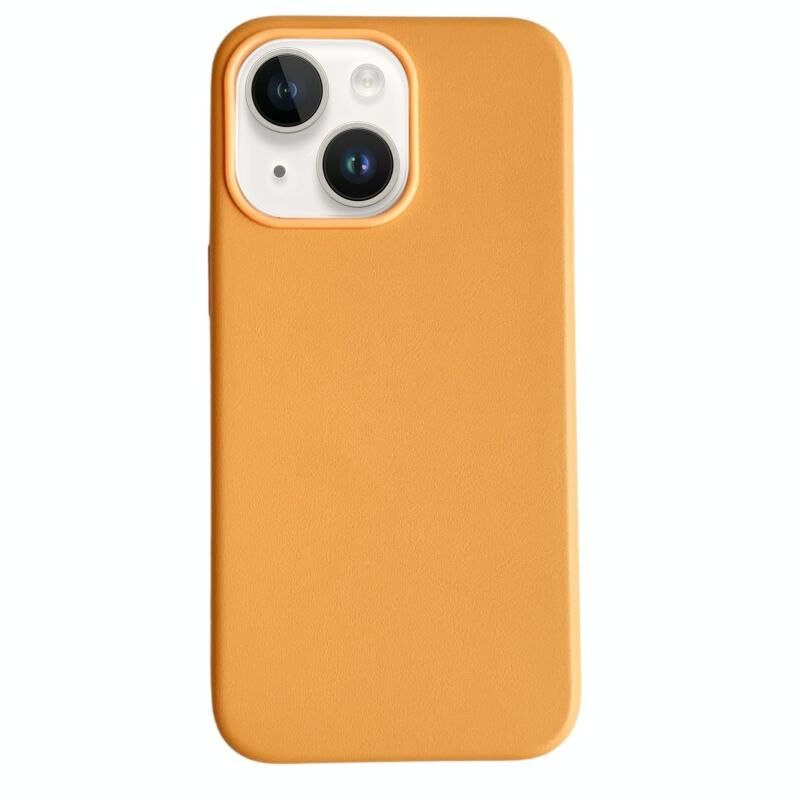 Θήκη τηλεφώνου μαγνητική Magsafe από γνήσιο δέρμα σε καθαρό χρώμα για iPhone 14 (Πορτοκαλί)