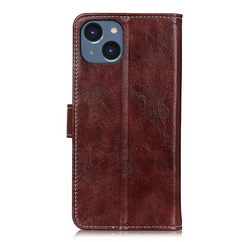 Θήκη τηλεφώνου οριζόντιας αναδίπλωσης από δέρμα για iPhone 14 με υφή Retro Crazy Horse (Μαύρο)