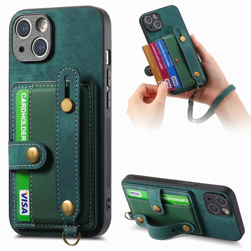 For iPhone 14 Retro Cross Wristband Wallet Leather Back Phone Case(Green)