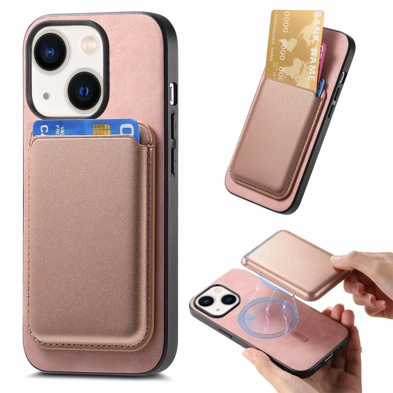 For iPhone 14 Retro Magsafe Card Bag PU Back Cover Phone Case(Pink)