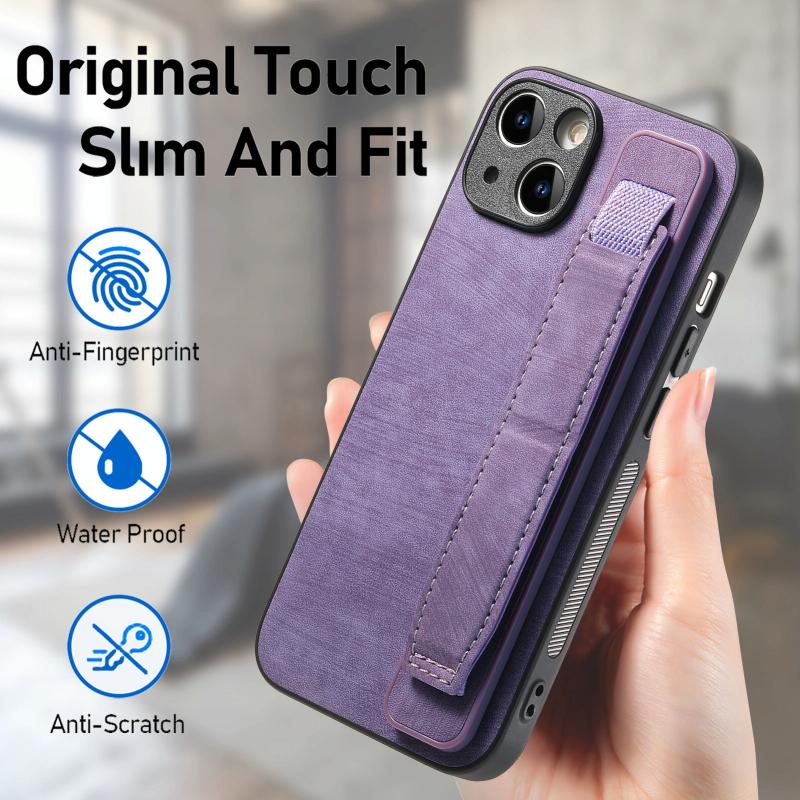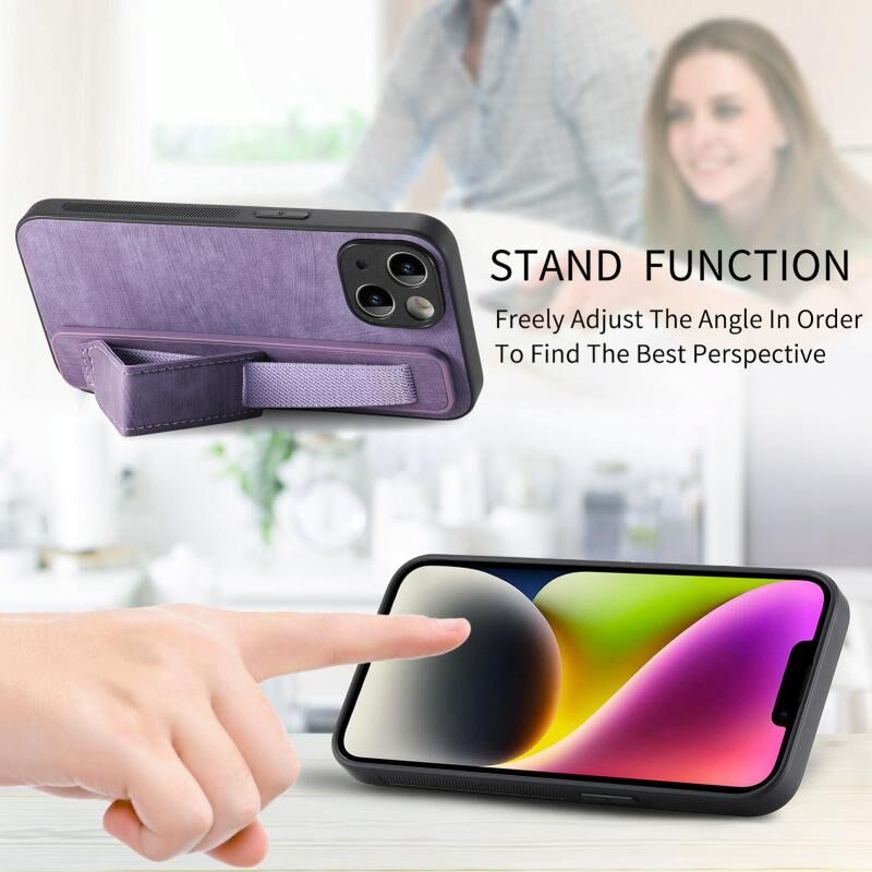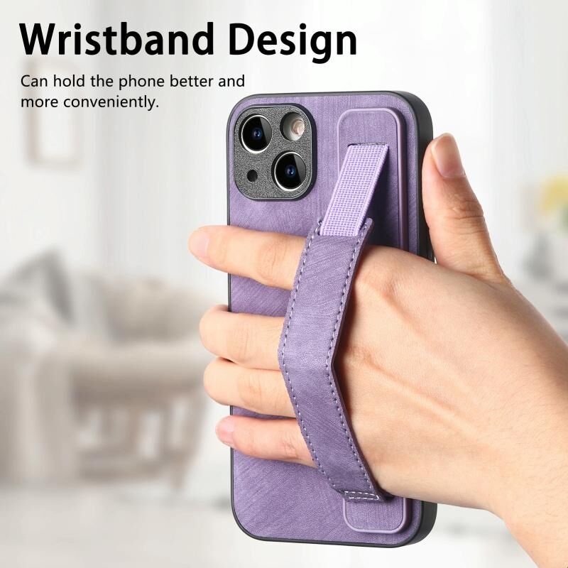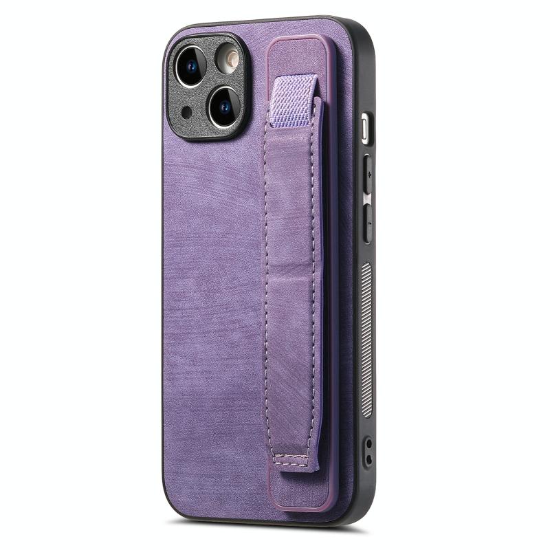 Θήκη iPhone 14 με Δερμάτινο Λουράκι Καρπού - Retro Στυλ (Μωβ)