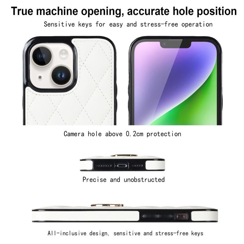 For iPhone 14 Rhombic PU Leather Phone Case with Ring Holder(White)