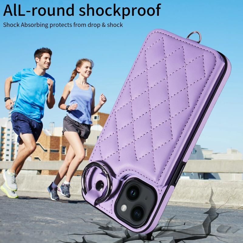 Θήκη τηλεφώνου για iPhone 14 με υφή ρόμβου και κοντό κορδόνι (Μωβ)