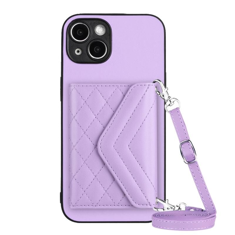 Θήκη κινητού τηλεφώνου RFID με υφή ρόμβου και μακρύ κορδόνι για iPhone 14 (Πράσινο)