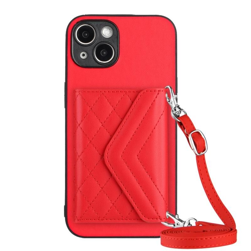 Θήκη κινητού τηλεφώνου RFID με υφή ρόμβου και μακρύ κορδόνι για iPhone 14 (Πράσινο)