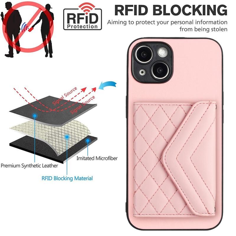 Θήκη κινητού τηλεφώνου RFID με υφή ρόμβου και μακρύ κορδόνι για iPhone 14 (Πράσινο)